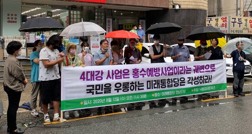 이 단체는 "미래통합당 의원들이 4대강 사업이 홍수를 예방했다고 주장하지만, 4대강 보는 홍수 조절 능력이 전혀 없다"고 반박했다.
