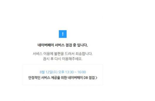 네이버페이 오류는 12일 오전 11시40분께부터 시작됐다. 현재 네이버페이 페이지에 접속하면 "서비스 점검 중"이라는 멘트와 함께 결제, 충전, 인출 등의 금융서비스를 이용할 수 없는 상황이다.