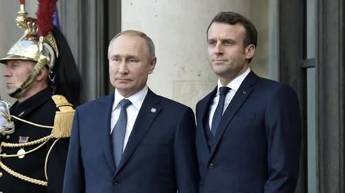 푸틴 대통령과 마크롱 대통령(오른쪽) [RT=연합뉴스 자료사진] |
