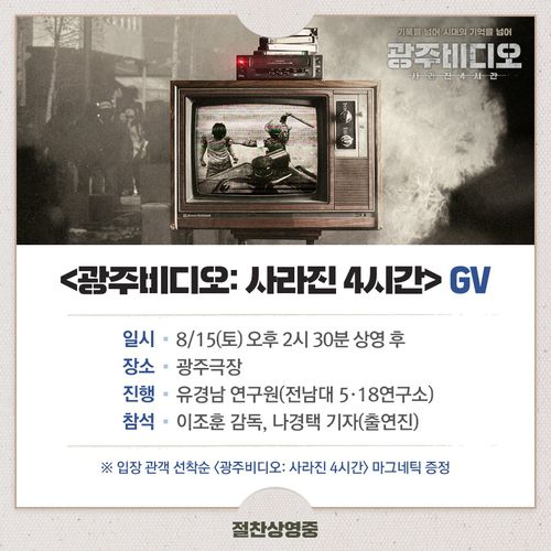 (광주=연합뉴스) 전승현 기자 = 5·18 민주화운동 40주년을 기념해 제작된 다큐멘터리 영화 '광주비디오:사라진 4시간'이 15일 오후 2시30분 광주극장에서 상영된다.