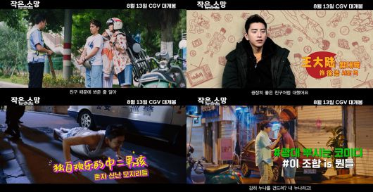 '나의 소녀시대', '장난스런 키스'의 왕대륙과 팽욱창, 위대훈 세 훈남 배우의 연애 버킷리스트를 담은 영화 '작은 소망'은 전국 CGV에서절찬 상영 중이다.