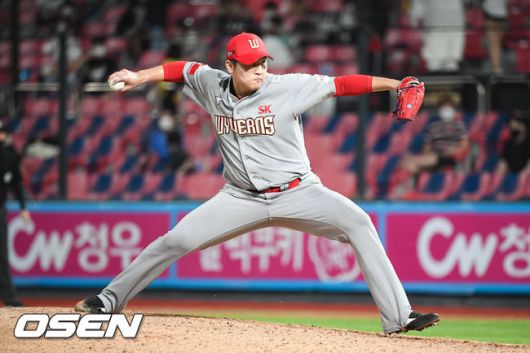[OSEN=수원,박준형 기자] 13일 오후 경기도 수원시 수원KT위즈파크에서 KBO리그 KT 위즈와 SK 와이번스의 경기가 진행됐다. 6회말 SK 두번째 투수 박민호가 역투하고 있다. / soul1014@osen.co.kr