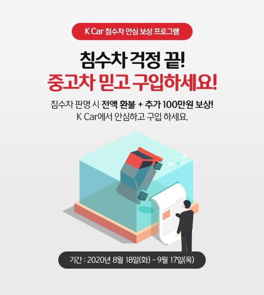 오는 8월 18일부터 9월 17일까지 한 달 동안 전국 케이카 직영점 및 홈서비스를 통해 직영중고차를 구매한 소비자라면 누구나 보상 서비스를 받을 수 있다. 구매 후 90일 내에 케이카 차량진단 결과와 달리 침수 이력이 있는 차로 확인될 경우, 차 가격을 100% 환불해주고 이전등록비 전액을 보상한다. 추가로 100만원의 보상금도 지급할 예정이다.