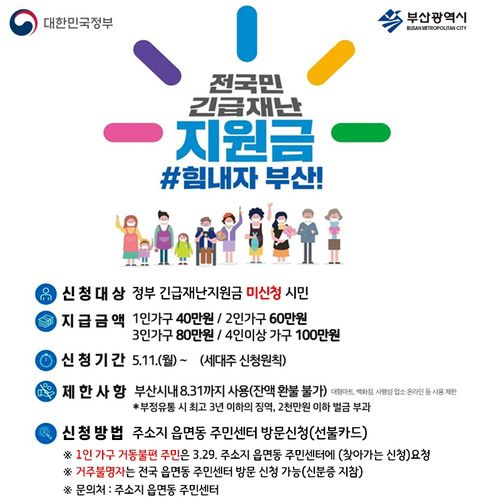 부산시는 이들 외에 아직 긴급재난지원금을 신청하지 않은 가구를 대상으로 17일부터 온라인, 오프라인 홍보를 강화할 예정이다.