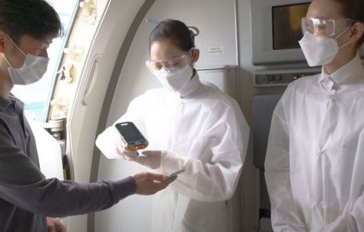 또 객실승무원은 비행 근무 시 마스크, 장갑 이외 방호복, 고글 그리고 마스크밴드를 착용해 비행 중 방역을 철저히 하고 있다.
