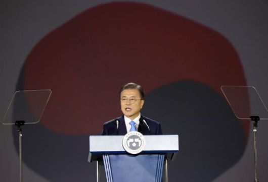 문 대통령은 이날 오전 서울 동대문디자인플라자(DDP)에서 열린 '제75주년 광복절 경축식'에 참석해 경축사에서 "우리 정부는 언제든 일본 정부와 마주 앉을 준비가 돼 있다"며 이같이 말했다. 그러면서도 강제징용 피해자들이 제기한 '불법행위 배상청구권'은 소멸하지 않았다고 판단한 대법원 판결에 대해 "대한민국 영토 내에서 최고의 법적 권위와 집행력을 가진다"며 이에 대해서는 입장을 확고히 했다.