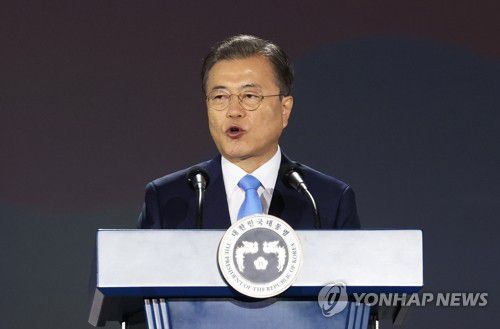 (서울=연합뉴스) 박경준 기자 = 문재인 대통령은 15일 "남북 협력이야말로 남북 모두에게 핵이나 군사력의 의존에서 벗어날 수 있는 최고의 안보정책"이라고 말했다.