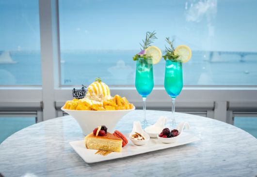 '여름 호캉스'의 시그니처 메뉴로 손꼽히는 망고빙수와 시그니처 논알콜 칵테일도 빼놓을 수 없다. 망고빙수는 우유얼음을 곱게 갈아낸 눈꽃 빙수 위에 망고가 듬뿍 올려져 있어 과육의 달콤함과 시원함을 동시에 맛볼 수 있다. 취향에 따라 연유, 아몬드, 블루베리&라즈베리를 곁들이면 된다. 진한 치즈의 풍미와 촉촉함이 느껴지는 치즈 케이크, 마카롱도 즐길 수 있다. 시그니처 논알콜 칵테일은 보는 것만으로도 시원해지는 푸른빛의 청량감이 돋보인다. 이용시간은 오전 11시∼오후 6시다.