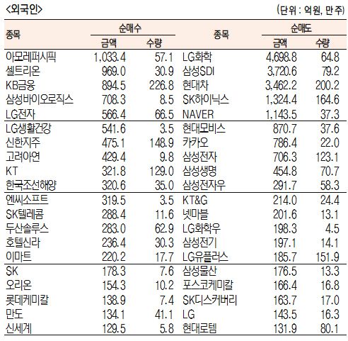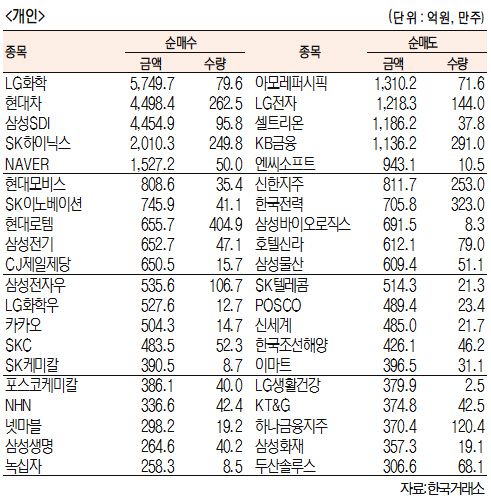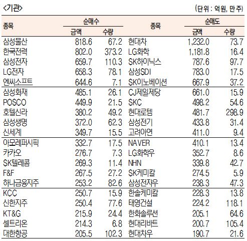 [표]주간 유가증권 기관·외국인·개인 순매수도 상위종목(8월 10일~14일)