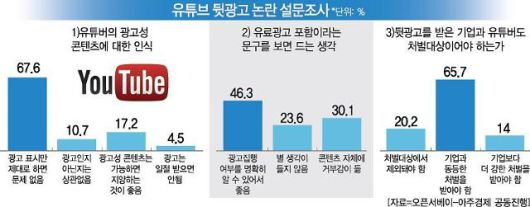 광고표시만 하면 광고성 콘텐츠도 문제없다는 답변(67.6%)이 다수를 차지했다. 유튜브 영상 내 '유료광고 포함'이라는 문구에 대해 절반가량(46.3%)이 "콘텐츠의 광고집행 여부를 명확히 알 수 있어 좋다"고 답했다.