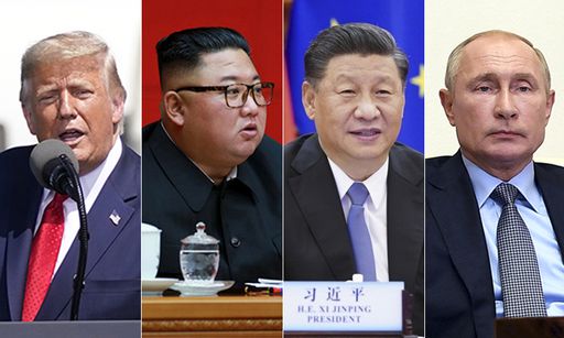 도널드 트럼프 미국 대통령(왼쪽부터) 김정은 북한 국무위원장, 시진핑 중국 국가주석, 블라디미르 푸틴 러시아 대통령. 연합뉴스 |