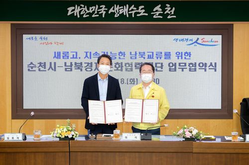 (순천=연합뉴스) 형민우 기자 = 전남 순천시와 남북경제문화협력재단(이하 경문협)이 한반도 평화 정착을 위한 남북 도시 간 교류사업에 나선다.