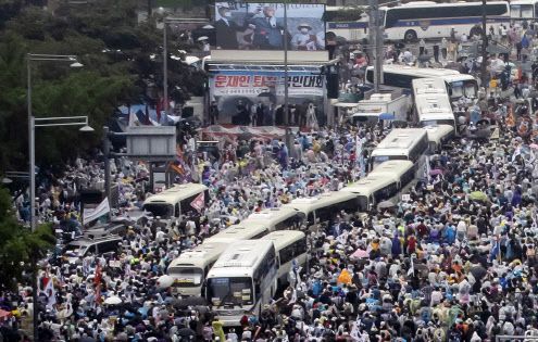 반면 민주당과 정의당 등에서는 통합당과 전 목사의 행보에 대해 맹비난했다. 통합당이 8·15광화문집회를 사실상 방조한 것에 대해 국민 앞에 사과해야 한다는 것이다. 서울시는 방역 강화를 위해 집회 금지 조치를 발표했으나 홍문표 의원 등 전·현직 의원들이 집회에 참석했다는 게 민주당 측 설명이다. 또 전 목사도 방역을 방해하고 코로나19를 확산시킨 법적 도덕적 책임이 분명히 져야 한다고 했다.