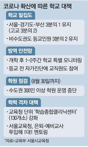 코로나19가 급속히 확산되는 가운데 교육당국이 비수도권 학교의 2학기 전면등교 계획을 철회했다. 서울과 경기도에서 거세지고 있는 코로나19 확산세가 지방으로 번질 가능성이 크다고 판단해서다.