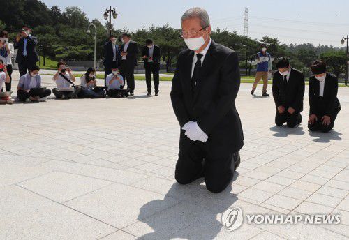 (서울·광주=연합뉴스) 나확진 이동환 기자 = 미래통합당 김종인 비상대책위원장이 5·18 희생자들의 영령 앞에 무릎을 꿇으며 호남에서 의미있는 첫발을 디뎠다.