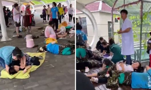 사고는 유리 미끄럼틀에서 발생했다. 중궈신원왕(中国新闻网)은 19일 갑작스러운 폭우로 유리 미끄럼틀에 탄 관광객이 줄줄이 미끄러지면서 사고가 났다고 전했다. 한꺼번에 출발한 관광객 60여 명이 미끄러운 유리 바닥에서 일제히 통제력을 잃고 충돌하면서 미끄럼틀은 아수라장이 됐다.