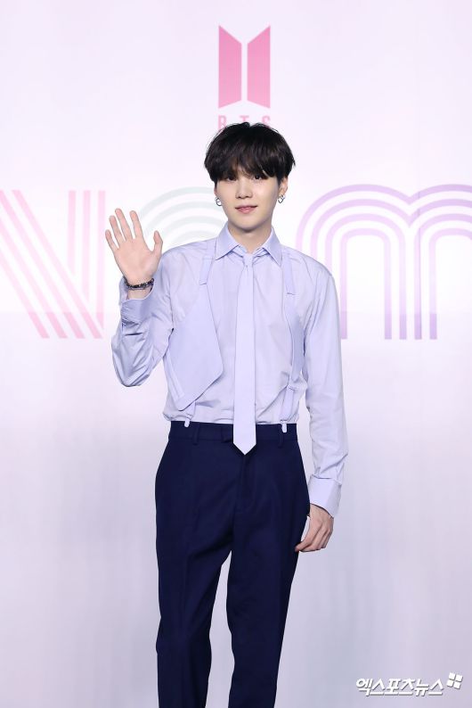 [엑스포츠뉴스 김한준 기자] 21일 오전 방탄소년단 디지털 싱글 '다이너마이트'(Dynamite) 발매 기념 글로벌 기자간담회가 온라인 생중계로 진행됐다. 방탄소년단 슈가가 포즈를 취하고 있다. kowel@xportsnews.com / 사진=빅히트엔터테인먼트