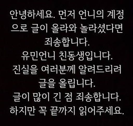고 고유민의 동생 고민지씨는 21일 고유민의 SNS를 통해 “유민 언니 친동생이다. 진실을 알리려고 글을 올린다”는 글이 담긴 사진을 올렸다.
