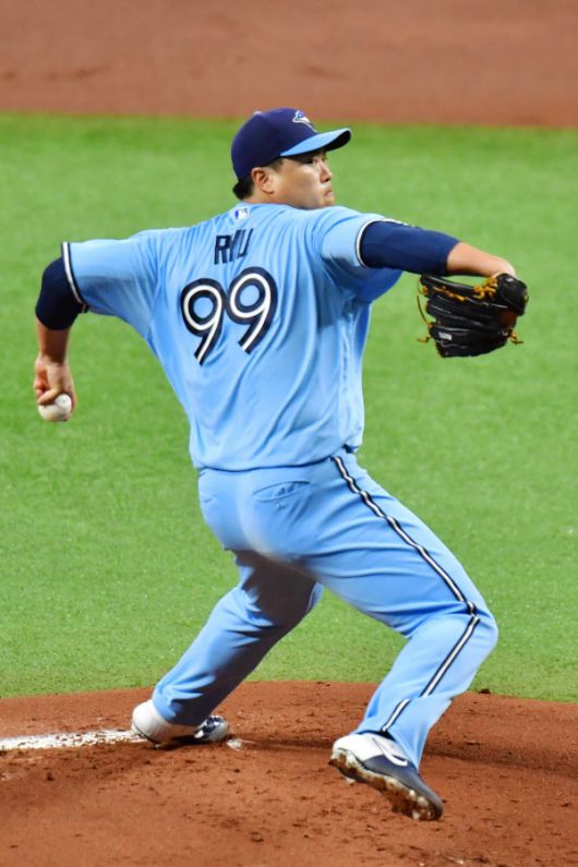 류현진은 이날 포수 리스 맥과이어와 첫 배터리 호흡을 맞췄다. 1회는 공 12개로 마무리하고 산뜻하게 출발했다. 선두타자 마이크 브로소를 헛스윙 삼진, 헌터 렌프로를 중견수 뜬공, 브랜든 라우를 투수 땅볼로 처리했다.