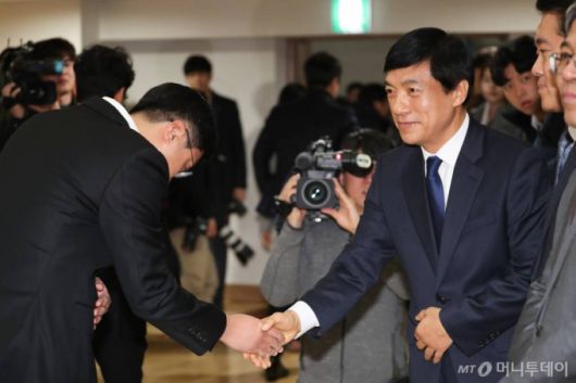 이성윤 신임 서울중앙지검장이 13일 오전 서초구 서울중앙지검에서 열린 '제61대 서울중앙지방검찰청 검사장 취임식'을 마친 뒤 직원들과 인사하고 있다. / 사진=이기범 기자 leekb@ |
