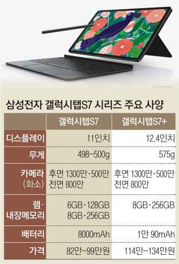 최근 공개된 삼성전자의 하반기 전략 스마트폰인 ‘갤럭시노트20 시리즈’는 모바일 필기구인 ‘S펜’ 기능이 대폭 강화된 것이 특징이었는데 갤탭S7은 이러한 장점을 극대화시켰다. 전작보다 반응 속도가 80%(최대 0.009초 만에 반응) 향상된 S펜을 마음껏 이용하기엔 6.7~6.9인치의 갤노트20 화면은 다소 비좁은 느낌이 있었다.