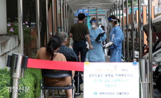 24일 서울 관악구 관악구보건소에서 시민들이 코로나19 검사를 기다리고 있다./권도현 기자 |