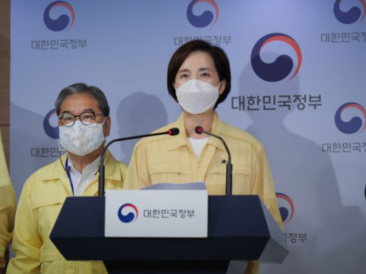 유은혜 부총리 겸 교육부장관이 26일 정부서울청사에서 조희연 서울시교육감, 이재정 경기도교육감, 도성훈 인천시교육감과 긴급 합동 브리핑을 열고 `수도권지역 전면 원격수업 전환 계획`을 밝히고 있다. 이날 정부는 고3을 제외한 수도권 전체 학교를 대상으로 26일부터 9월 11일까지 대면수업을 중지하고 일괄 원격수업으로 진행한다고 발표했다. [사진제공 = 교육부] |