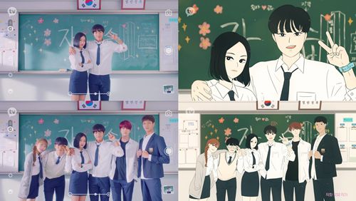 교실 내 칠판 앞에 6명의 주인공들이 나란히 늘어선 원작 속 한 장면처럼, 각자의 매력과 개성을 담은 캐릭터로 변신한 6명의 배우들은 완벽하게 같은 모습을 소화해내며 말 그대로 ‘만찢남녀’들의 진수를 선보였다. 헤어스타일부터 표정과 포즈 뿐 아니라 살짝 늘어지게 맨 넥타이, 손목시계의 색상과 크기까지 캐릭터를 똑같이 소화해낸 것은 물론, 캐릭터들의 성격과 ‘찐친’ 케미까지 은근히 묻어나는 분위기까지 살려냈다. 더욱이 칠판에 그려진 그림, 교실의 인테리어까지 마치 웹툰에서 튀어나온 듯한 ‘만찢교실’까지 표현해낸 세심한 디테일에 원작 팬들의 관심이 더욱 높아지고 있다.