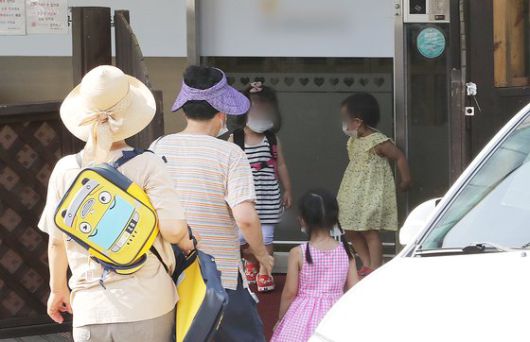 25일 서울 종로구의 한 국공립어린이집에서 학부모들이 자녀를 긴급돌봄교실에 등원 시키고 있다. 뉴스1 |