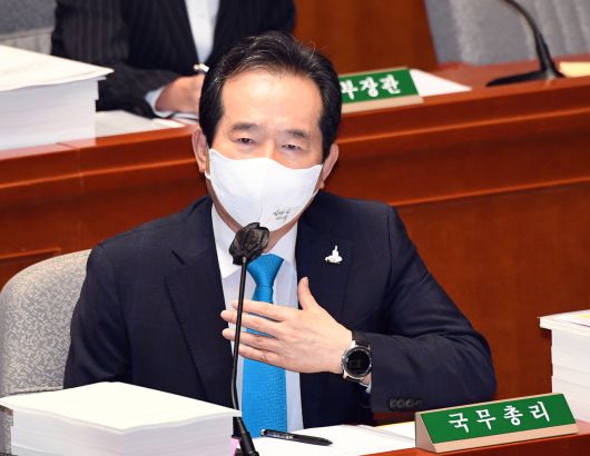 정 총리는 이날 서울 여의도 국회에서 열린 예산결산특별위원회 전체회의에 참석해 '법무부 장관과 검찰총장의 영역 싸움에 총리가 나서서 조정하는 게 어떤가'라는 홍준표 무소속 의원 질의에 "한 번 생각은 해보겠지만 제 판단으로는 법무부 장관과 검찰총장이 국민 눈높이에 맞게 잘 처신해주길 기대한다"며 이같이 밝혔다.