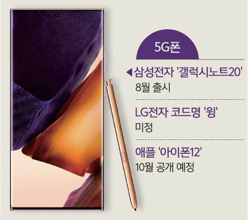 하반기는 폴더플폰과 함께 5G폰의 경쟁도 한층 고조될 것으로 예상된다. 올해는 5G망을 구축한 지역이 늘고 제품도 다양해져 시장이 보다 성숙할 것이란 관측이다. 삼성전자는 지난 5일 갤럭시 언팩을 통해 ‘갤럭시노트20’을 공개했다. 6.7인치와 6.9인치 화면크기를 지원하며 S펜의 기능을 크게 향상한 것이 특징이다. LG전자는 디스플레이가 가로로 회전하는 신제품 ‘윙’(코드명)을 선보일 예정이다. 6.8인치 메인 디스플레이와 4인치 서브 디스플레이를 적용해 영상시청과 동시에 키패드 등을 이용하는 등 멀티태스킹 기능을 극대화할 것으로 보인다.
