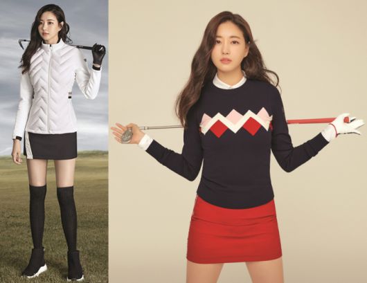 또 다른 컷에서는 몸매 라인이 드러나는 니트웨어와 빨간색 미니스커트를 입은 모습이다. 몸매를 살리기 쉽지 않은 FW 시즌에도 슬림하고 맵시 있는 핏을 연출할 수 있는 골프복이 눈길을 끈다.