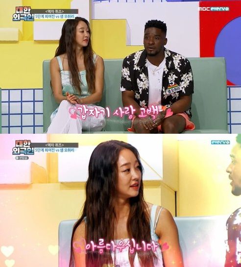 샘 오취리는 최근 방송된 MBC에브리원 '대한외국인'에서도 최여진을 향해 "너무 예쁘다. 올해 본 사람 중 최여진 씨가 가장 아름답다"며 뜬금없는 고백을 하기도 했다.