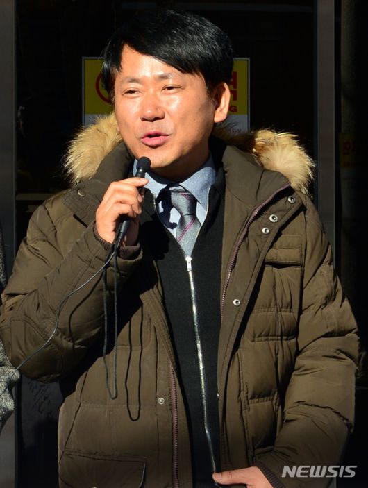 【광주=뉴시스】류형근 기자 = 31일 오후 광주 동구 광주고등법원 앞에서 일제 강점기 시절 강제징용 피해자들의 손해배상 소송 대리인 이상갑 변호사가 기자회견을 하고 있다. 2018.10.31. hgryu77@newsis.com |