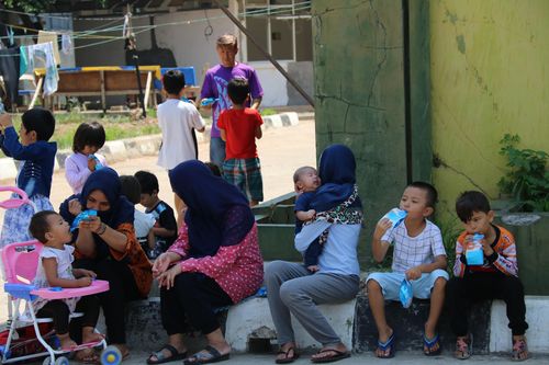 자카르타 서부 옛 지역사령부 건물에 마련된 칼리데레스 난민촌에는 어린이 40여명을 포함해 총 230여명이 전기도, 수도도 없이 텐트를 치고 살고 있다.