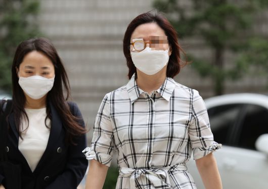 '자녀 입시비리·사모펀드' 관련 혐의를 받는 정경심 동양대 교수가 27일 오전 서초구 서울중앙지방법원에서 공판에 출석하기 위해 법정으로 향하고 있다. [연합] |