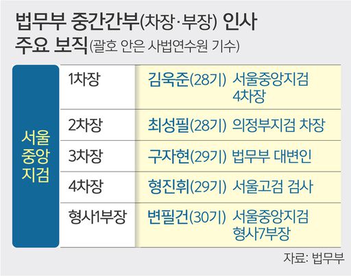 추 장관은 이번 인사를 통해 자신과 인연이 있는 이들을 승진시키며 중책을 맡겼다. 취임 후 자신을 보좌해 온 구자현 법무부 대변인을 중앙지검 3차장으로 보냈는데 과거 이 자리는 중앙지검의 ‘입’ 역할을 할 정도였다. 중요 요직이다. 서울중앙지검에서 직접수사를 모두 담당하게 된 4차장에는 형진휘 서울고검 검사가 임명됐다. 그는 국무조정실 부패예방추진단에 파견가 있었는데 코로나19 역학조사 지원단장을 맡아 추 장관의 신뢰를 얻은 것으로 알려져 있다. 새 법무부 대변인에는 국회에 파견가 있던 박철우 서울중앙지검 부부장이 임명됐다.