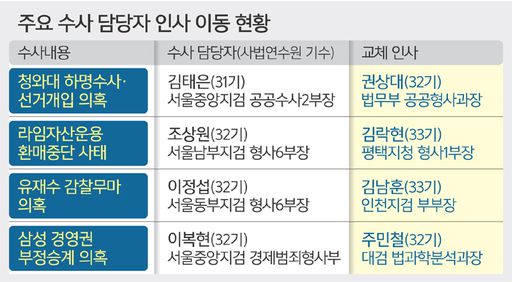 이제 눈길은 이후 검찰 수사에 쏠린다. 당장 삼성 경영권 부정승계 의혹, 청와대 하명수사 의혹, 추 장관 아들 휴가 미복귀 의혹 등 중요하거나 정치적으로 민감한 사건들의 담당부장이 사건 마무리가 되지 않은 상태에서 떠나게 됐다. 이후 수사 책임은 후임 부장들이 아닌 이러한 인사를 낸 법무부 등이 책임을 질 수밖에 없다.