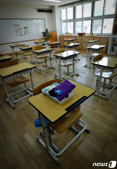 신종 코로나바이러스 감염증(코로나1) 사태 장기화로 고등학교 3학년을 제외한 수도권 유치원 및 초·중·고교 전면 원격수업이 시행된 26일 서울 용산초등학교의 교실이 비어 있다. /사진=뉴스1 |