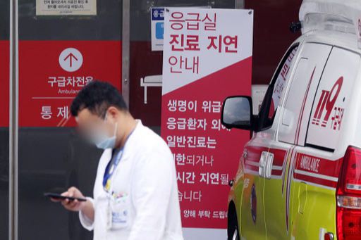 정부의 공공의대 신설 정책 등에 반발해 시작된 제2차 전국의사 총파업 마지막날인 28일 서울의 한 대학병원 응급의료센터 앞에 응급실 진료 지연을 알리는 안내판이 세워져 있다. 뉴스1 |