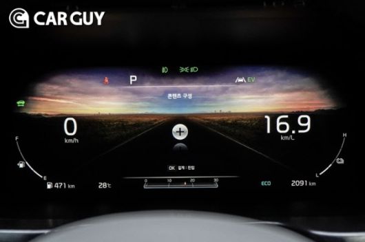 하이브리드 전용인 네이비 그레이 인테리어가 상당히 고급스럽다. 화사함까지 느껴진다. 실내에는 새로운 장비를 대거 채택했다. 12.3인치 계기반, 10.25인치 센터 디스플레이뿐 아니라 기아차가 최근 많이 사용하는 다이얼 방식 기어 노브까지 달았다. 계기반은 총 네 가지 테마를 제공한다. 드라이브 모드에 따라 모양을 바꾸는 것뿐 아니라 기상 상황이나 시간에 따라 각기 다른 디자인으로 옷을 바꿔 입는다. 10.25인치 센터 디스플레이에는 기아차의 최신 UI가 적용되어 있다. 가독성이 떨어지는 것 외에 단점은 없다. 다양한 편의장비로 가득 채워져 있다. 기아페이, 빌트인캠, 자연의 소리, 후석 대화 모드, 서라운드 뷰, 후석 취침 모드 등 원하는 장비는 모두 들어 있다.