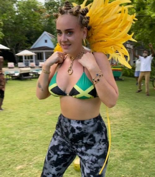 사진 속에서 아델은 녹색, 검정, 노랑이 어우러진 자메이카 국기를 모티브로 한 비키니를 입고, 노란색 깃털장식을 어깨에 둘렀다. 문제가 된 건 흑인들이 매듭 모양으로 묶어올리는 일명 ‘반투매듭’ 모양의 헤어스타일.
