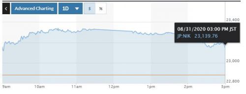 일본증시 닛케이225지수 추이. 31일 종가 2만3139.76 출처 마켓워치 |
