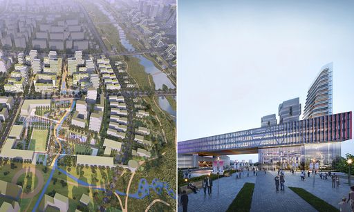 고양 창릉 신도시 첫마을 시범단지(왼쪽)와 부천 대장 신도시 S-BRT 복합환승센터 랜드마크 조감도. LH 제공 |