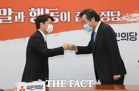 [더팩트ㅣ국회=배정한 기자] 이낙연 더불어민주당 신임 당대표가 1일 오전 서울 여의도 국회에서 국민의당 당대표실을 찾아 안철수 대표(왼쪽)와 기념사진 촬영을 하고 있다.