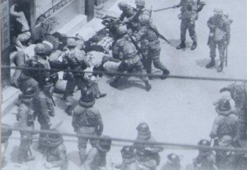 1980년 5월 광주민주화운동 당시 금남로에서 시위 학생들을 연행하는 계엄군. [연합뉴스] |