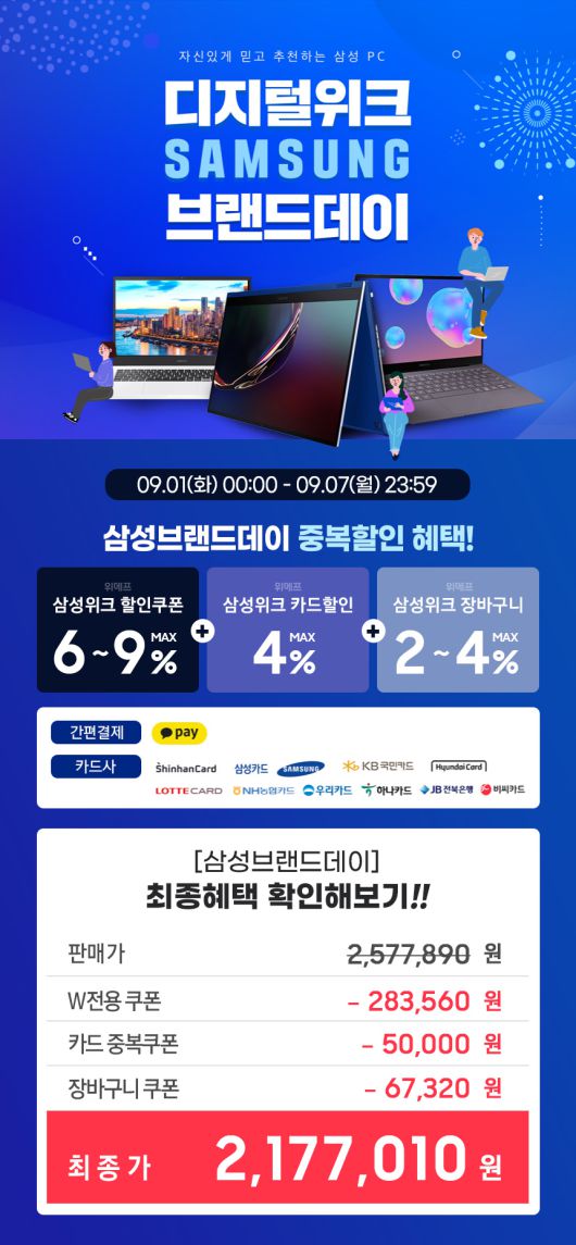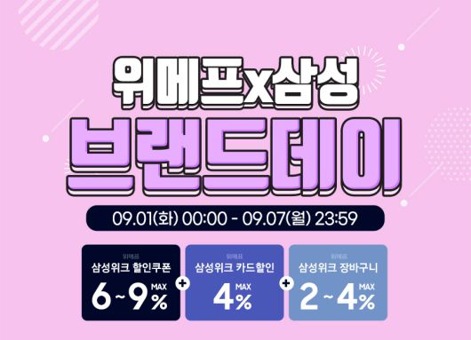 [smartPC사랑=임병선 기자] 삼성전자 온라인 공식 스토어 매크로네트웍은 9월 1일(화)부터 9월 7일(월)까지 7일 동안 진행되는 위메프 디지털위크 삼성전자 브랜드데이에 참여한다고 밝혔다.