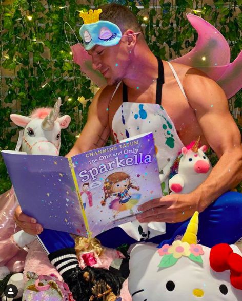 함께 공개된 사진 속 채닝 테이텀은 우람한 근육질의 몸에 여러 귀여운 아이템들을 장식하고 자신이 쓴 책 '하나뿐인 스파켈라'(The One and Only Sparkella)'를 들고 있다.