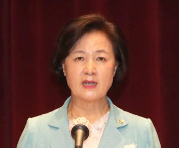 지난달 12일 오전 정부과천청사에서 열린 ‘75주년 8.15 광복절 기념 독립유공자 후손 국적증서 수여식’에서 추미애 법무부 장관이 축사하고 있다. 사진=연합뉴스. |