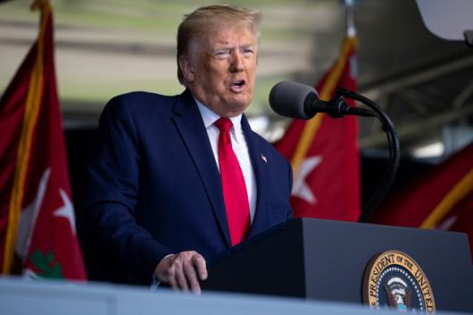 도널드 트럼프 미국 대통령이 6월 13일 뉴욕 웨스트포인트 육군사관학교 졸업식에서 연설하고 있다. 트럼프 대통령은 이날 행사에서 부자연스러운 모습을 보여 '건강 이상설'이 제기됐다. 웨스트포인트=AP 연합뉴스 |